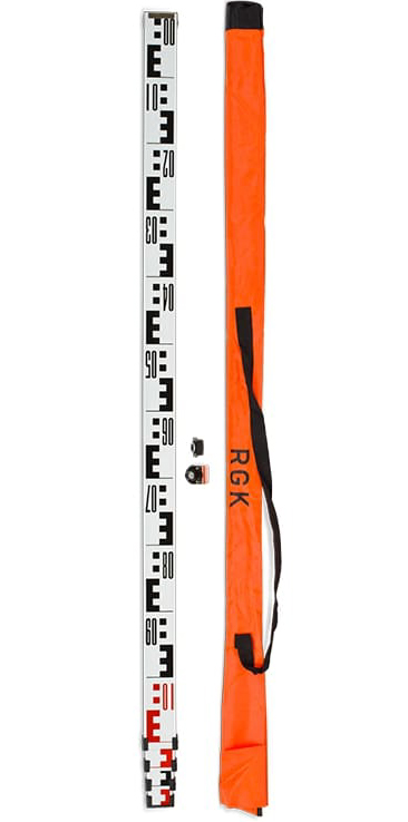 TS-5 – алюминиевая нивелирная рейка высотой 5 м. С одной стороны рейки имеется точная миллиметровая шкала, с другой - Е-градуировка. В комплект входит чехол и пузырьковый уровень.