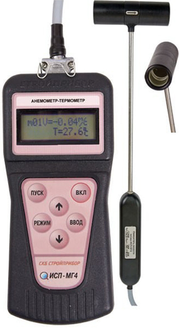 ИСП-МГ4ПМ — цифровой анемометр, пневмометрический, предназначен для определения скорости и температуры воздушных потоков в открытом пространстве, скорости и температуры дымовых газов и газопылевых потоков, отходящих по закрытым каналам от стационарных источников.